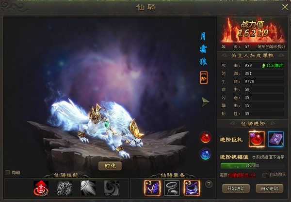 2、每次进阶必定可提升进阶祝福值,满足当阶祝福值后,再次进阶,必定进入下一阶级,当仙骑达到4阶后祝福值将限时清零。